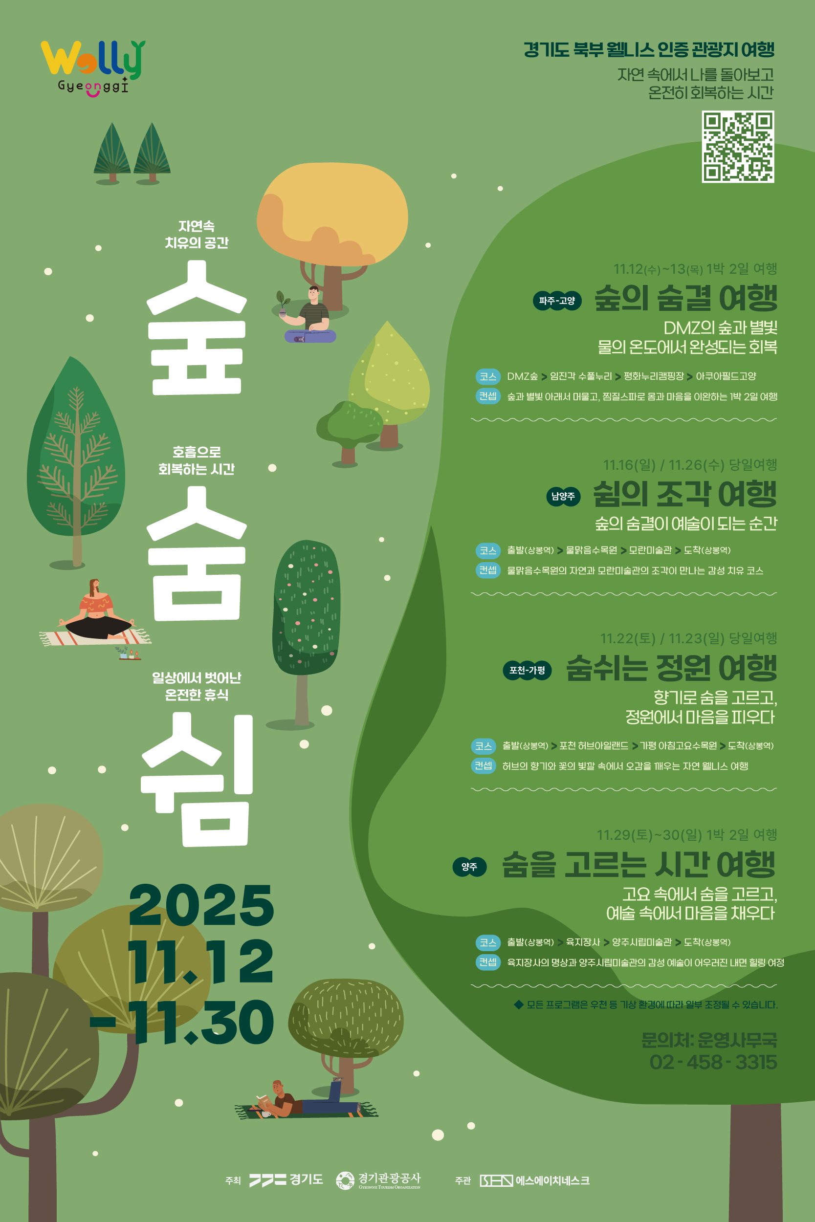 ‘경기도 북부 웰니스 인증 관광지 여행 – 숲(林), 숨(息), 쉼(休)’이 여러분을 초대합니다.